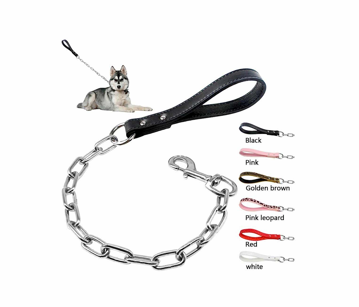 Köpekler için 3.5 mm çapında ipten üretilmiş, 120 cm uzunluğunda ve deriden tutma sapı bulunan zincir köpek gezdirmeler