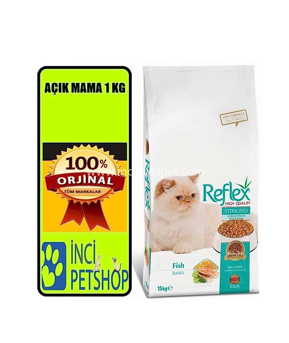 Zengin vitamin içeriği İçindekiler: İşlenmiş Hayvansal Protein, Buğday, Mısır, Hayvansal Yağ, Balık Unu, Balık Yağı, Mısır Gluteni, Pirinç, Kurutulmuş Şeker Pancarı, Ciğer Aroması, Balık Aroması, Tuz, Keten Tohumu, Kuru Bira Mayası, Taurin, MOS (Mannan Oligo Sakkarit), Beta-Glukan, Yuka, Kuilaya. Mineraller: Kalsiyum, Fosfor, Sodyum, İyot, Çinko, Bakır, Potasyum Klorür, Demir, Selenyum. Vitaminler: Vit. A, Vit. D, Vit. E, Vit. C, Vit. B1 - B2 - B3 (Niasin) - B6 - B12 - B7 (Biotin) - B9 (Folik Asit), Vit. K, Kolin, Kalsiyum Pantotetan. ANALİZ DEĞERLERİ: Ham Protein %33 Ham Yağ %10 Ham Selüloz %5 İnorganik Madde %8 HCI'de Çözünmeyen Kül %2 Nem %10 Kalsiyum %1,5 Fosfor %1 Genel Uyarılar: REFLEX Kedi Mamasıyla beslenen 1 yaş ve üstü