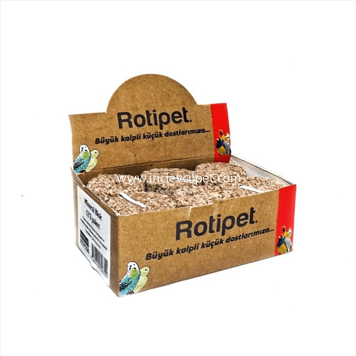 Kafes kuşları için mineral bloğudur. Muhabbet kuşlarının iskelet ve gaga yapısını destekler. Zengin vitamin ve mineral kaynağıdır.